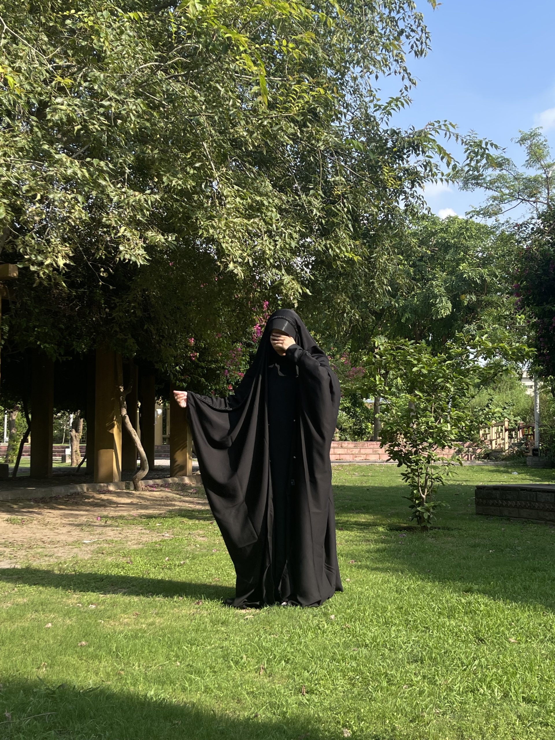 The Crystal Cascade Irani abaya is made to feel as soft and graceful as its name. With Crystals embroided to the sleeve linings as well as the head protion, the abaya gives an elegant and crystally look, this design brings a lovely mix of texture and beauty. The beads are rich, giving the abaya a slightly luxurious feel — but still keeping things modest and calm.